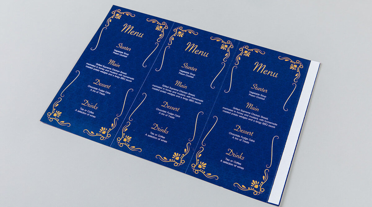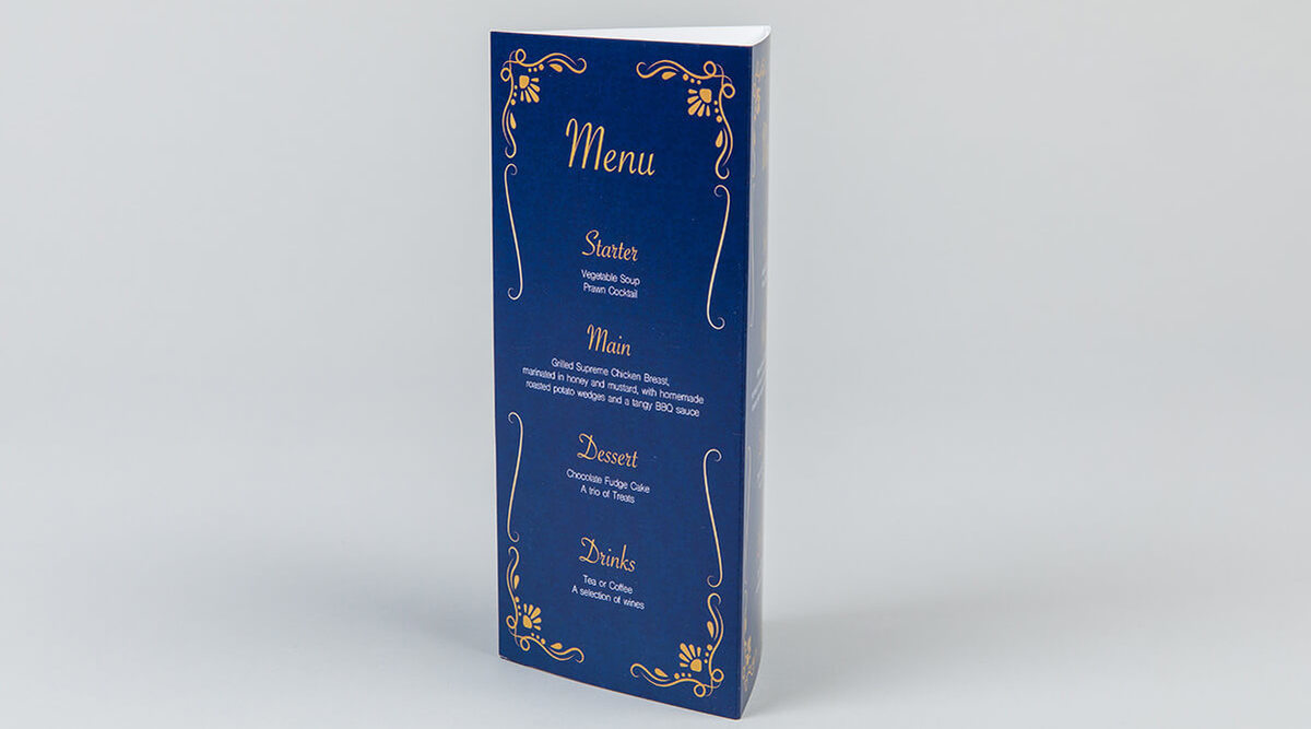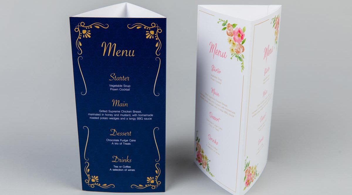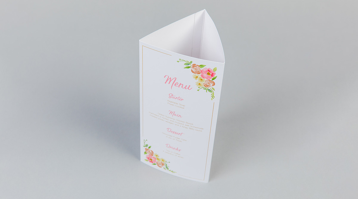 Triple-sided Wedding Table Talkers can be printed with a range of finishes including premium uncoated, silk or gloss. They come flat making them easy to store and be assembled when they’re needed.